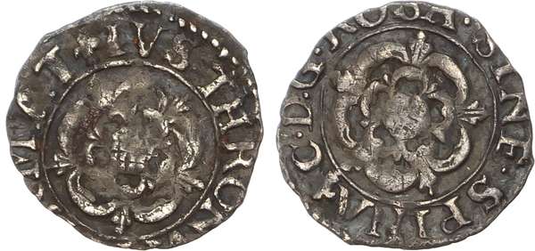 Group A, Tower (under King), mm: Lis – 1625. Double rose, rev. Double rose, 0.41gm. (Brooker 694; N 2261; S 2837). Another, but portrait type, Group D, Fourth bust, oval shield, mm. not visible, 0.42gm. (Brooker 700; N 2268; S 2845) [2] First good Very Fine, second about Very Fine.
