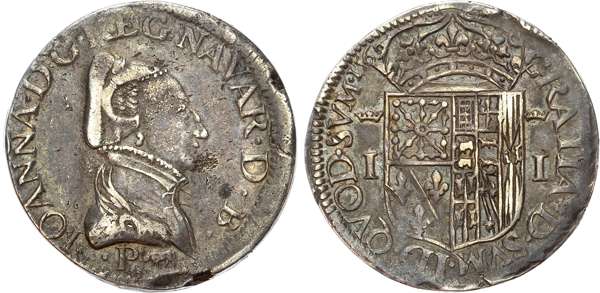 France, Navarre, Jeanne d'Albret (1562-1572), silver Teston