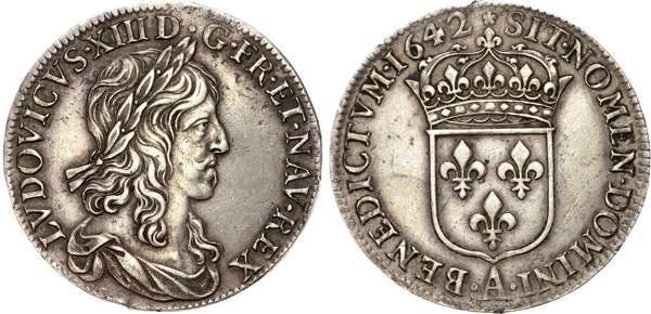 France, Louis XIII (1610-1643), silver Demi Écu, 1642 A, Paris, 13.69g (Dy. 1346; Gad. 50). Good Very Fine. Ex. mount, edge marks to 12 and 6 o’clock from mount.