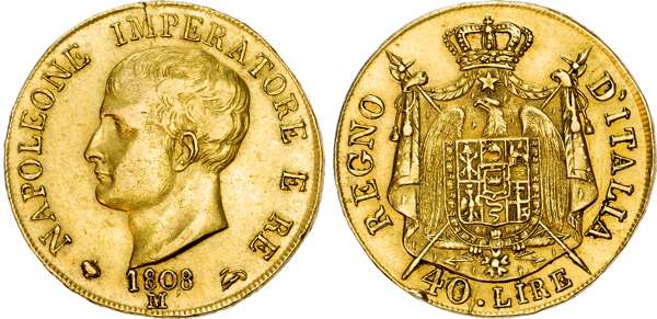 Italy, Napoleon I (1804-1814), gold 40 Lire, 1808