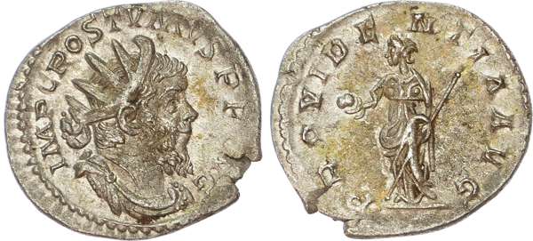 IMP C POSTVMVS P F AVG, radiate, draped and cuirassed bust of Postumus right. Rev. PROVIDENTIA AVG, Providentia standing left, holding globe and sceptre. (RIC 80). Good Very Fine.