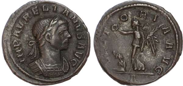 IMP AVRELIANVS AVG, laureate and cuirassed bust of Aurelian right. Rev. VICTORIA AVG, Victory advancing left, holding wreath and palm, bound captive to left. (RIC 55). Good Very Fine.