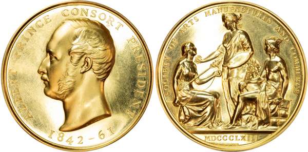 Royal Society for the Encouragement of Arts, Manufactures and Commerce, 9 carat gold ‘Albert’ prize medal.
