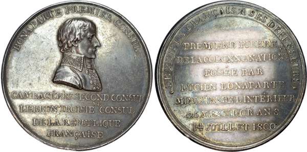 Silver medal (56mm/68.10gm) by B. Duvivier. Bust of Napoleon right. Rev, inscription and dates in seven lines (Bramsen 63). A couple of small edge bumps, otherwise Near Extremely Fine, darkly toned, rare in silver.