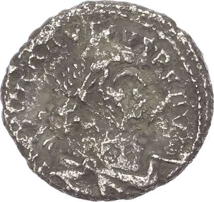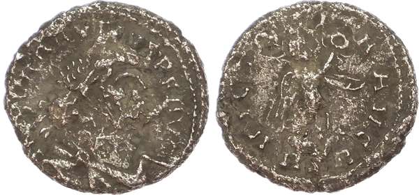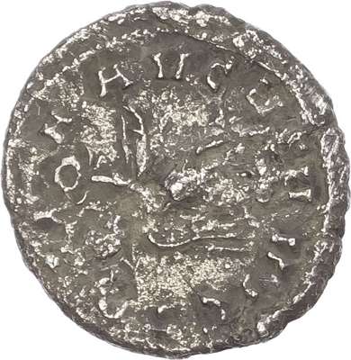 IMP CARAVSIVS P F AVG, laureate, draped and cuirassed bust right. Rev. VICTORIA AVG, Victory advancing right, holding wreath and palm; RSR in exergue. (RIC -). Very Rare. Fair. Crystalised.