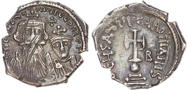 Constans II, with Constantine IV (AD 641-668) AR Hexagram, Constantinople, AD 654-659, 4.62g.
