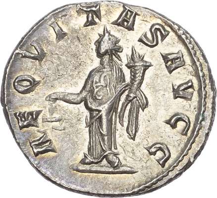 IMP M IVL PHILIPPVS AVG, radiate, draped and cuirassed bust of Philip I right. Rev. AEQVITAS AVGG, Aequitas standing left, holding scales and cornucopiae. (RIC 82). Good Extremely Fine. Very Rare.