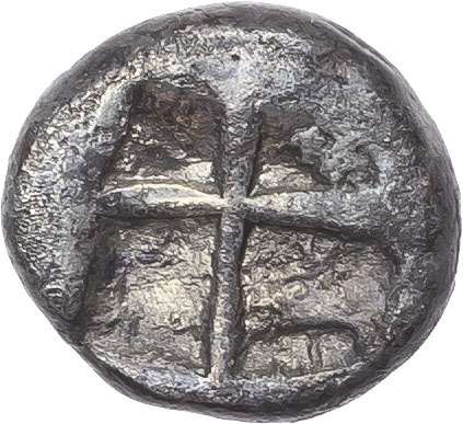 Sphinx seated left, amphora to left. Rev. Quadripartite incuse square. (SNG Copenhagen 1546). About Very Fine.