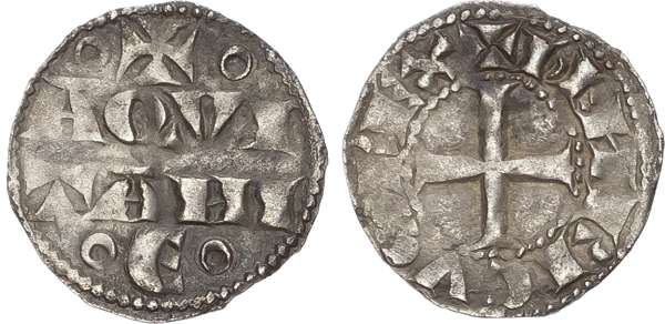 Cross pattée, ✠ hENRICVS REX. Rev, º ✠ º AQVITANI in two lines, º Є º. (SCBC 8001; Elias 1; Duplessy 1030; Elias Collection 6; Poey d'Avant 2756). Very Fine, toned.