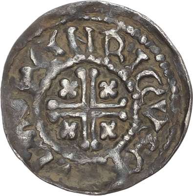 Crowned bust facing with a sceptre with the legend reading HENRICVS REX. Rev, voided short cross with quatrefoil in each angle with the legend reading HENRICVS O [N] RULAN, 1.32gm (N. 973/3). Choice Good Very Fine, slightly crimped and legend weakly struck in parts, nevertheless a strong example for type, very rare.