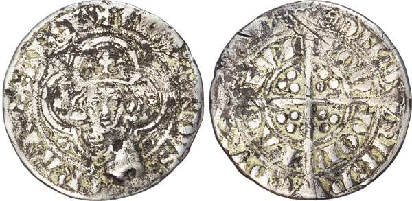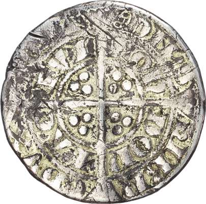 +EDWARDVS DI GRA REX ANGL, crowned bust facing. Rev, DNS HIBN EDVX AQVT / LONDONIA CIVI, long cross with trefoil of pellets in each quarter, 5.02g. (S. 1379 type; N. 1007). Near Fine. Previously gilded and mounted, very rare.