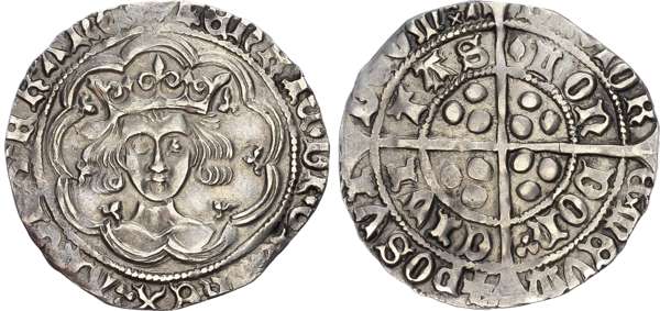 Henry VI (First Reign, 1422-1461), Groat, Leaf-Trefoil issue, Class B, London mint, mm. plain cross.