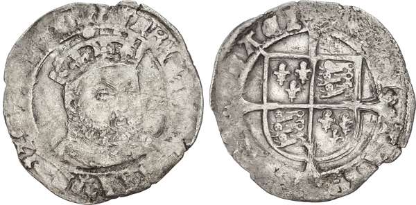 HENRIC 8 D G ANG FRA Z HIB REX, crowned bust facing three-quarters left. Rev, CIVITAS EBORACI, square-topped coat of arms over a long-cross forchée, 2.15g. (S. 2374; N. 1848). Good Fine or better, some doubling to reverse.