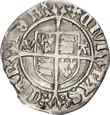 Henry VIII (1509-1547), Second Coinage, Halfgroat, 1526-1532, Canterbury, crowned and draped bust right, rev. CIVITAS CANTOR, square-topped shield over long-cross fourchée, shield dividing W-A for Archbishop Warham, 1.30g, m.m. Cross Patonce, (North 1802; S.2343). Good very fine for issue, weak strike on reverse.