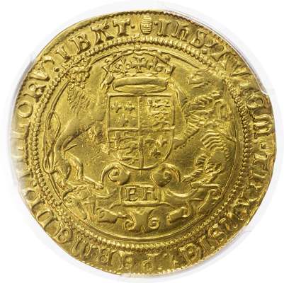 Edward VI (1547-1553), third period (1550-1553), weight 10.38g Edward VI Sovereign, mm. tun both sides, half-length figure of the King right, in armour and crowned, holding sword in right hand and orb in left, beaded and wire line inner circles, reverse crowned, plain, square topped shield with lion and griffin supporters, ER in cartouche below, beaded inner circle, (S.2450; N.1927). Good very fine, pleasing. Encapsulated by PCGS as AU50.