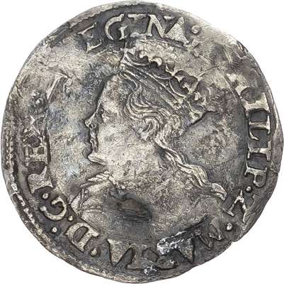 Crowned bust of Mary left, mintmark lis both sides, legend with Z for ET. Rev, quartered shield of arms upon long cross fourchée, 1.77gm (S. 2508; N. 1973). Good Fine, face details strong.