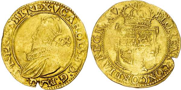 Charles I (1625-1649) Unite of twenty shillings, Tower mint under the King, Group B, mintmark heart (1629‑30).
