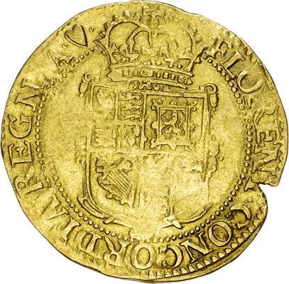 Crowned second bust left in ruff, armour and mantle breaking inner linear circle, value behind, legend surrounds CAROLVS DG MAG BR FR ET HI REX. Rev, crowned quartered coat of arms, reads FLORENT CONCORDIA REGNA, 8.88gm (S. 2688; N. 2149). Flan split at six o'clock, otherwise residually lustrous, About Fine or slightly better.