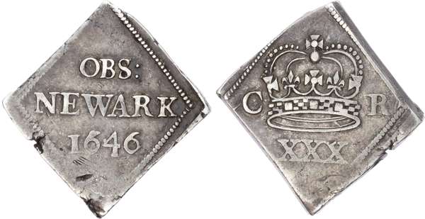 Charles I (1625-1649), Newark siege halfcrown, 1646, issued on a lozenge shaped flan.