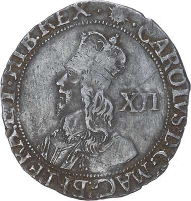 CAROLVS D G MAG BRI FRA ET HIB REX / XII, crowned bust left, denomination to right. Rev, CHRISTO AVSPICE REGNO, cross moline over square-topped coat of arms, 6.14g. (S. 2802; N. 2233). Very Fine, toned. Small scuff to reverse.