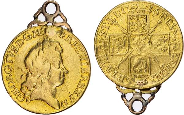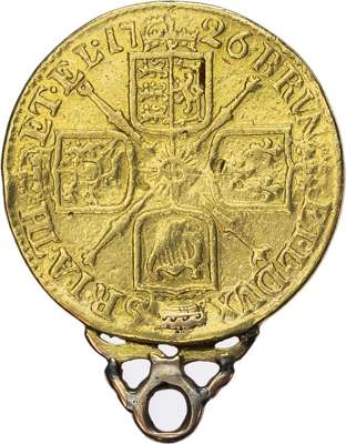 George I (1714-1727) Guinea 1726 (8.40gm/22ct, mount 0.12gm/9ct).