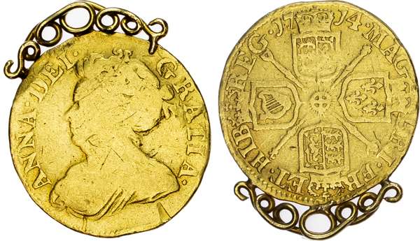 Anne (1702-1714) Half Guinea 1714 (4.20gm/22ct, mount 0.16gm/18ct).