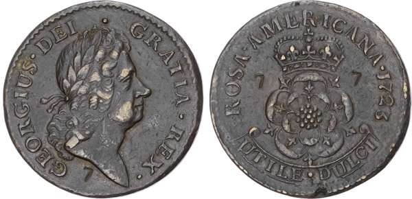 William Wood coinage, Rosa Americana coinage, Penny, 1723.