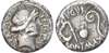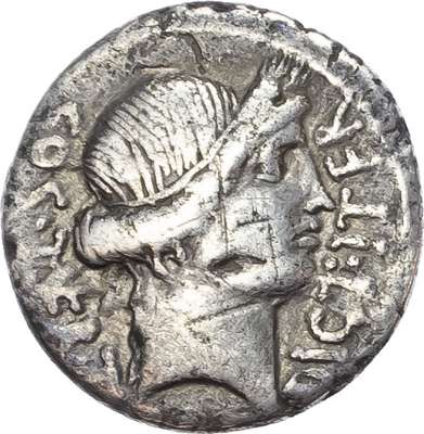 Julius Caesar (46 BC) AR Denarius, North Africa, 3.26g.