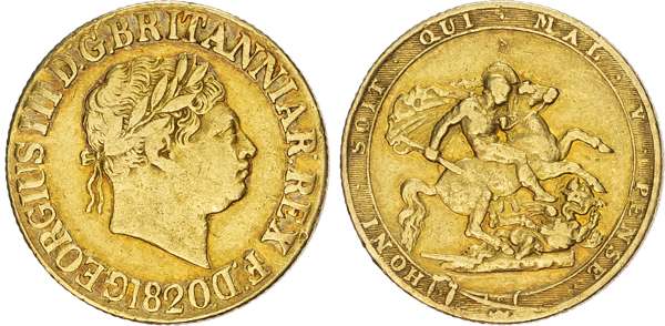 George III (1760‑1820), Sovereign, 1820, open 2, high 8.