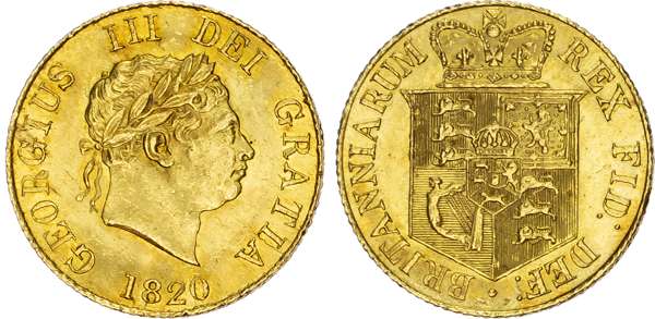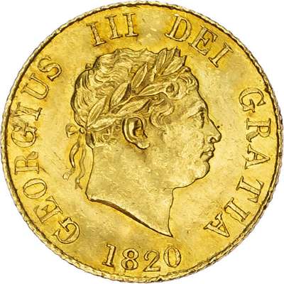 George III (1760-1820), Half Sovereign, 1820, laureate head right, date below, reverse, crowned shield of arms (S.3786). About uncirculated, reddish tone.