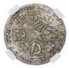 Laureate and draped bust right, legend surrounding GEORGIVS III DEI GRATIA. Rev, cruciform shields, with semee of hearts in Hanoverian shield, crowns in angles, garter star at centre, legend reads, MBF ET H REX FD BET LD SRI A TET E (S. 3746; ESC 1225). In NGC holder graded MS 63 (6769623-016).