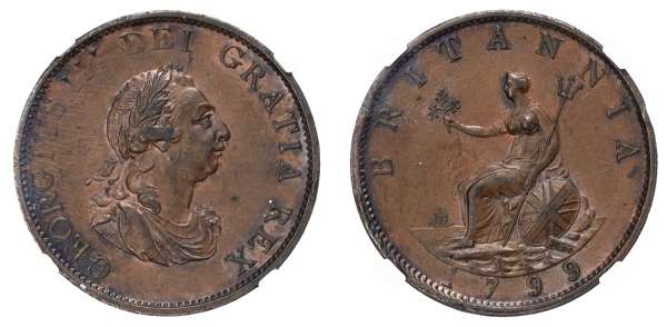 George III (1760-1820) Halfpenny 1799, NGC MS62