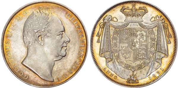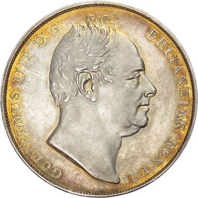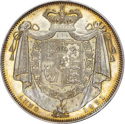 William IV (1830-37), Proof Crown, 1831, bare head right, w.w on truncation, rev. shield on mantle, edge plain (Bull 2462, ESC 271 ~ R2; S.3833). About as struck, grey toning with golden red hues.