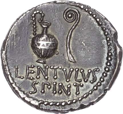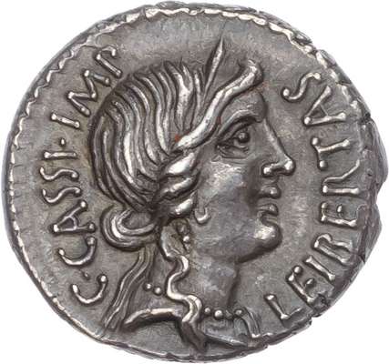 CASSI IMP LIBERTAS, veiled and draped bust of Libertas right. Rev. LENTVLVS SPINT, jug and lituus. (Crawford 500/5; CRI 223; Sydenham 1305)