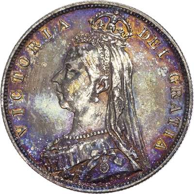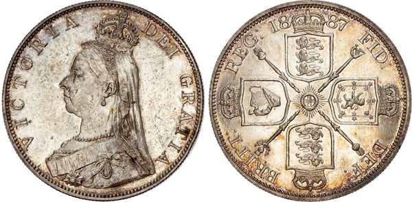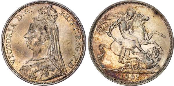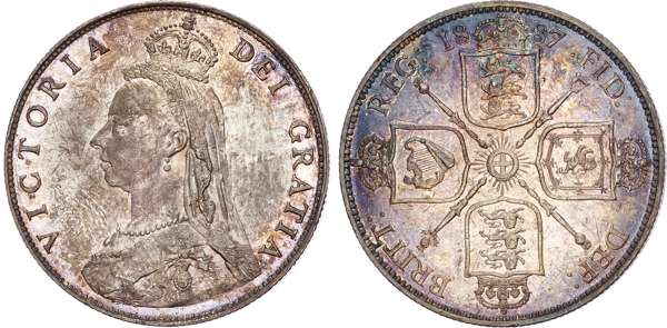 Comprising crown, double florin, halfcrown, florin, shilling, sixpence and threepence (7 coins) (cf. S. PS6). Varied conditions, mostly about Extremely Fine or better with some duskiness and contact marks, halfcrown cleaned and re-toned.