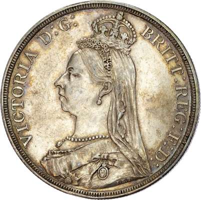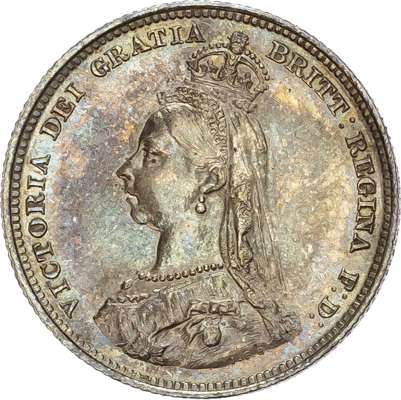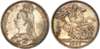 Comprising crown, halfcrown, florin, shilling, sixpence and threepence (6 coins) (S. 3921, 3924-6, 3928, 3931). Varied conditions, Good Very Fine to Good Extremely Fine, toned, in contemporary maroon fitted case (sound).