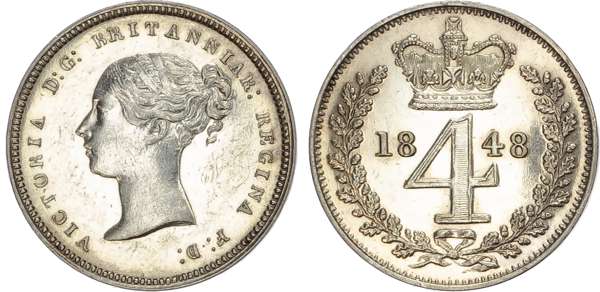 Victoria (1837-1901), Maundy Set, 1848, Fourpence, Threepence, Twopence, Penny.