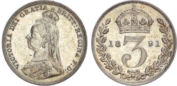 Victoria (1837-1901), Maundy Set, 1891, Fourpence, Threepence, Twopence, Penny.