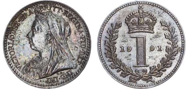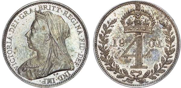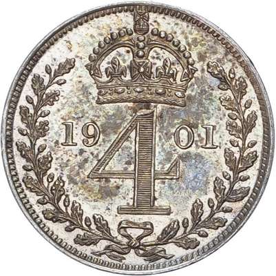 Victoria (1837-1901), Maundy Set, 1901, Fourpence, Threepence, Twopence, Penny.