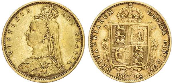 Half Sovereign 1892 London mint (4.00gm/22ct).