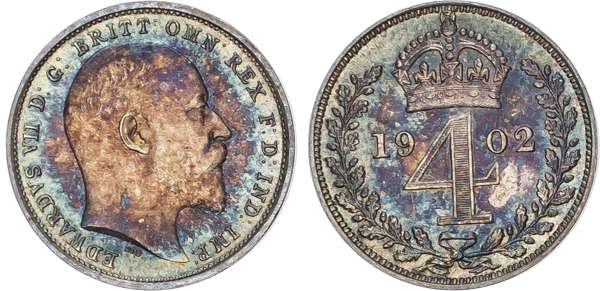 Edward VII (1901-1910) Maundy Set, 1902, Fourpence, Threepence, Twopence, Penny.