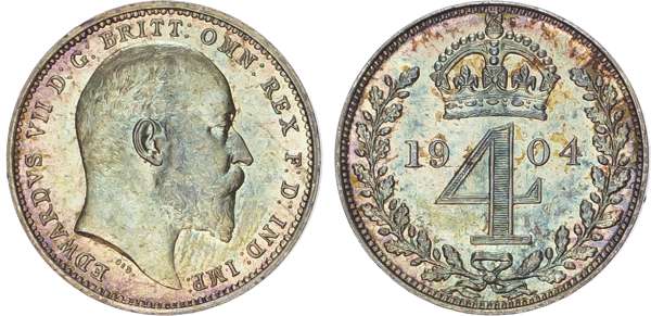 Edward VII (1901-1910) Maundy Set, 1904, Fourpence, Threepence, Twopence, Penny.