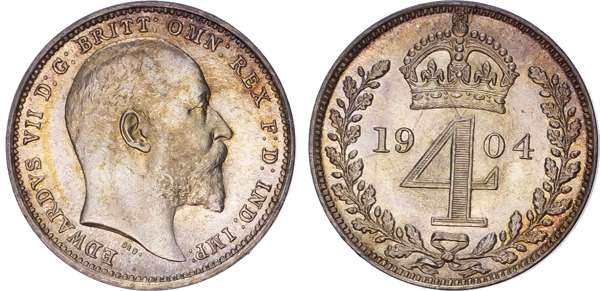 Edward VII (1901-1910) Maundy Set, 1904, Fourpence, Threepence, Twopence, Penny.