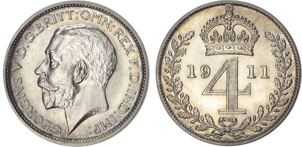 George V (1910-1936) Maundy Set, 1911, Fourpence, Threepence, Twopence, Penny.
