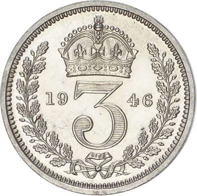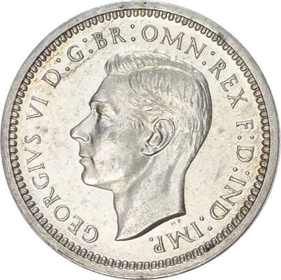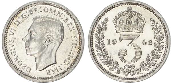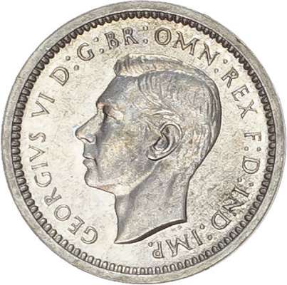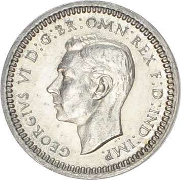 Bare head left, with raised HP in exergue, legend and toothed border surrounding, GEORGIVS VI DG BR OMN REX FD IND IMP. Rev, crowned mark of value with date either side all within oak wreath (S. 4086; Bull 4315; ESC 2563). A couple of tiny marks on threepence, otherwise all coins Good Extremely Fine or better, no case.