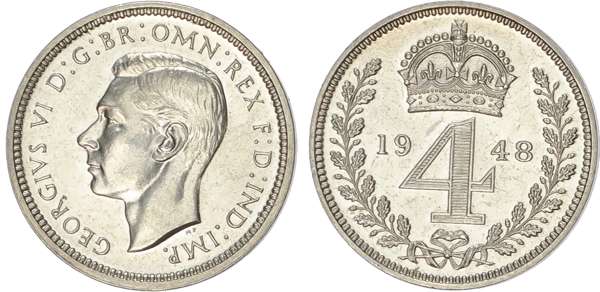 George VI (1936-1952) Maundy Set, 1948, Fourpence, Threepence, Twopence, Penny.