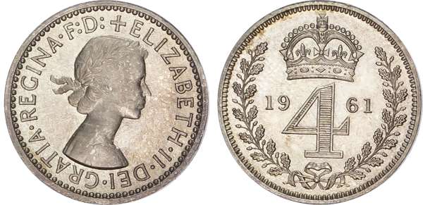 Elizabeth II (1952-2022) Maundy Set, 1961, Fourpence, Threepence, Twopence, Penny.