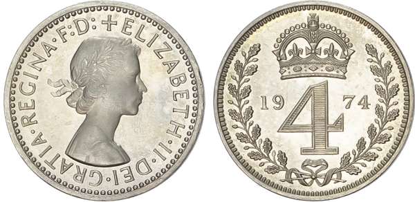 Elizabeth II (1952-2022) Maundy Set, 1974, Fourpence, Threepence, Twopence, Penny.