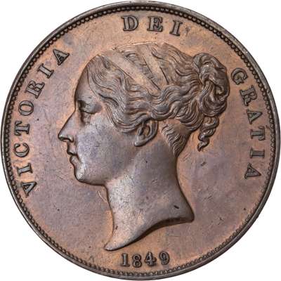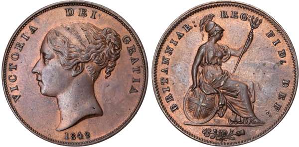 Victoria (1837-1901), Penny, 1849, 4 struck over 4 in date, young head left, rev. Britannia seated right, with ornamental trident, (BMC.1497; S.3948). Choice about uncirculated, some underlying red lustre, slightly cleaned at some point in the past.