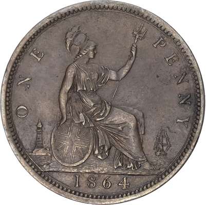 Victoria (1837-1901), Bronze Penny, 1864, Crosslet 4, Tooth Border, young bust left, reverse Britannia std. right, with shield and trident (S.3954; BMC.1663; F.48 dies 6 + G; Gouby BP1864B J+g). Bold good very fine, the reverse near extremely fine.